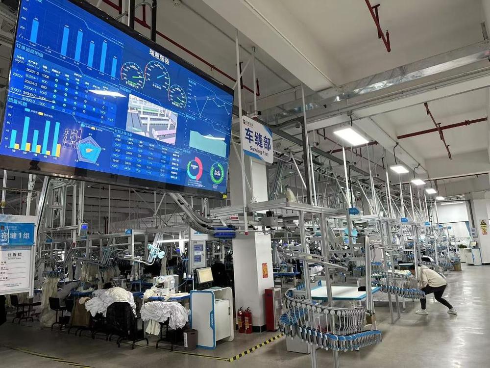 进入佛山市瑞蒽服装有限公司的智能车间✿◈★,巨大的数字化显示屏上跳动着订单等各项数据✿◈★。车间负责人说✿◈★,7分钟即可实现原料变成衣✿◈★。